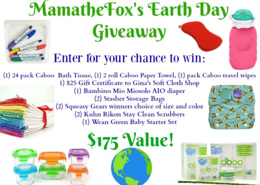 In honor of celebrating our beautiful planet, MamatheFox has put together an article titled Thinking Green, which features the differences between reusable and non reusable items. Graciously, a TON of green and eco-friendly companies sponsored a huge MamatheFox Earth Day Giveaway with $175 in prizes! Click here to enter to win the GRAND PRIZE VALUED AT $175
